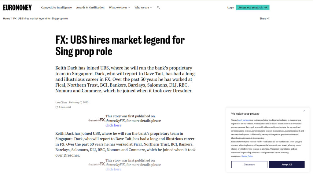 From the roaring trading floors of the early FX world to the fast-moving digital markets of today, Keith Dack’s career spans more than four decades at the very heart of global finance.